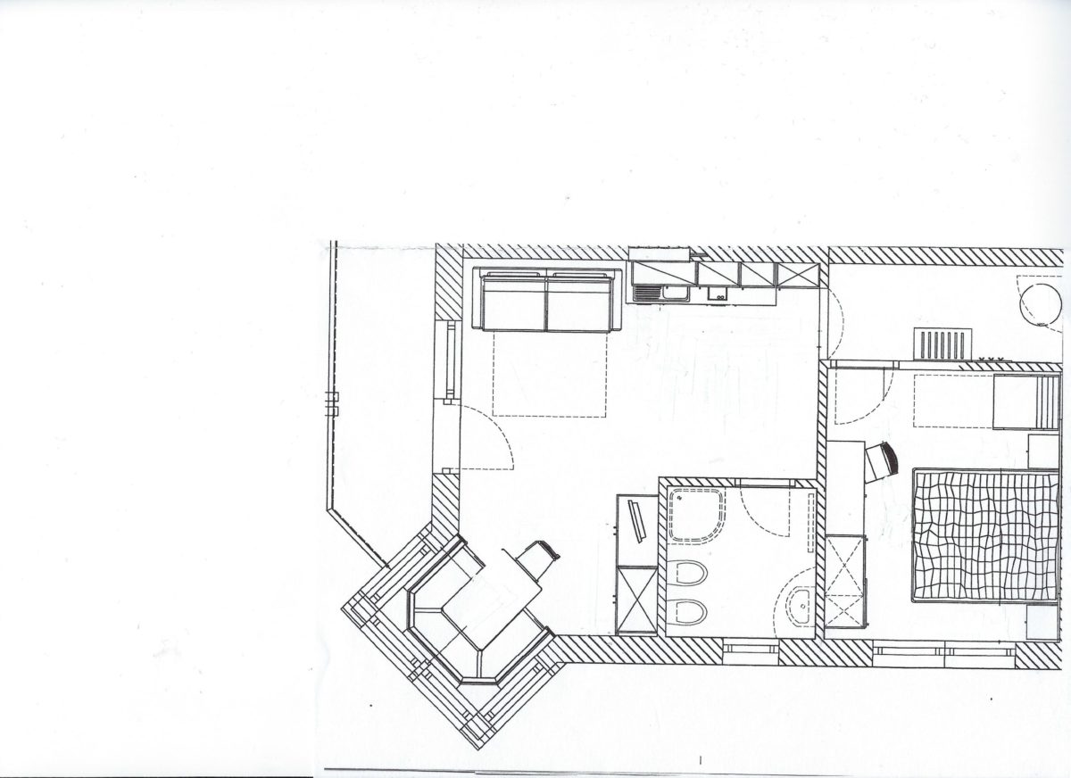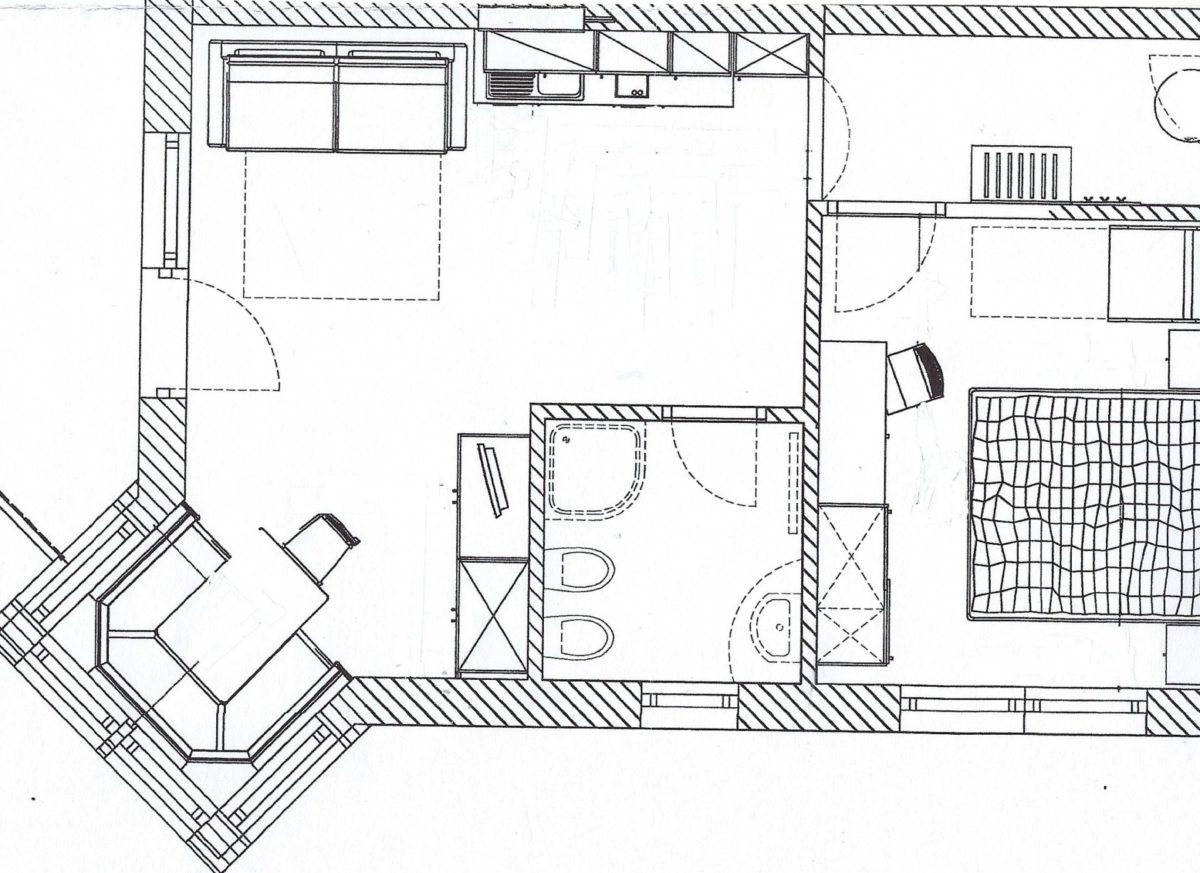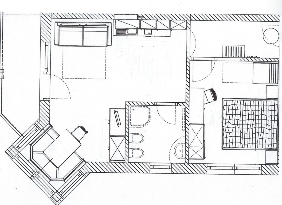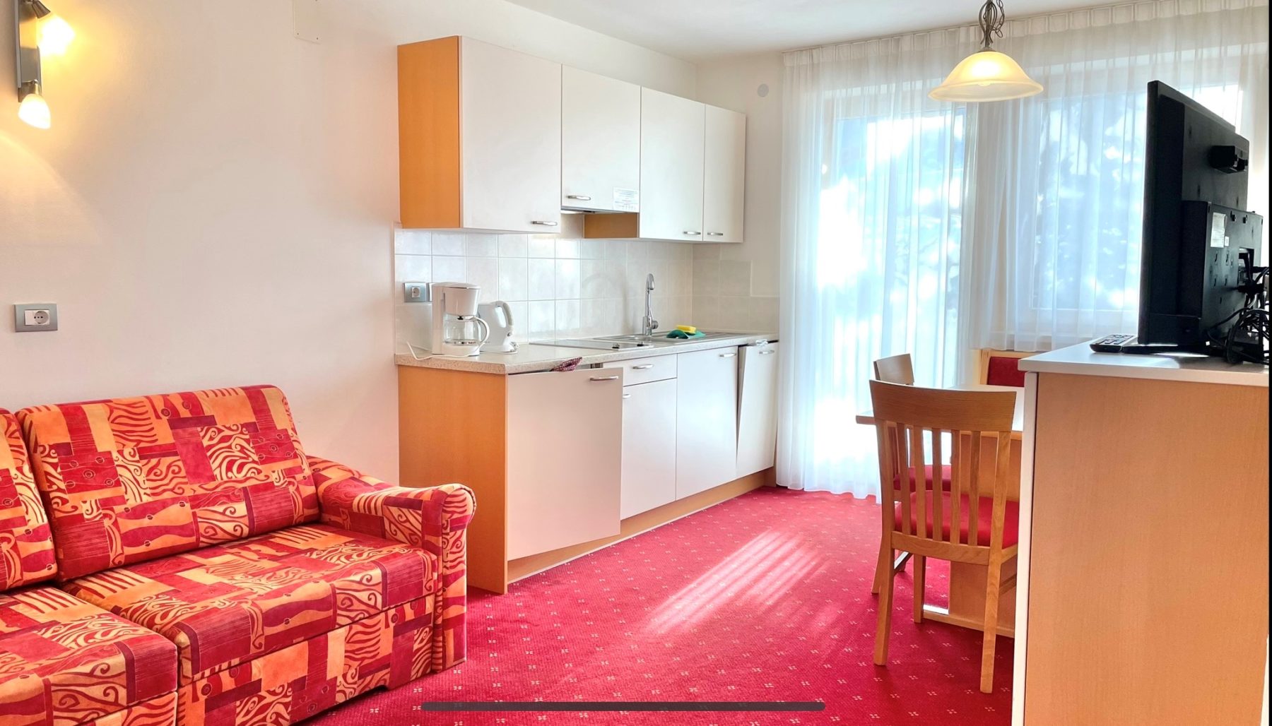 Sitzecke mit SAT-TV, Couchbett