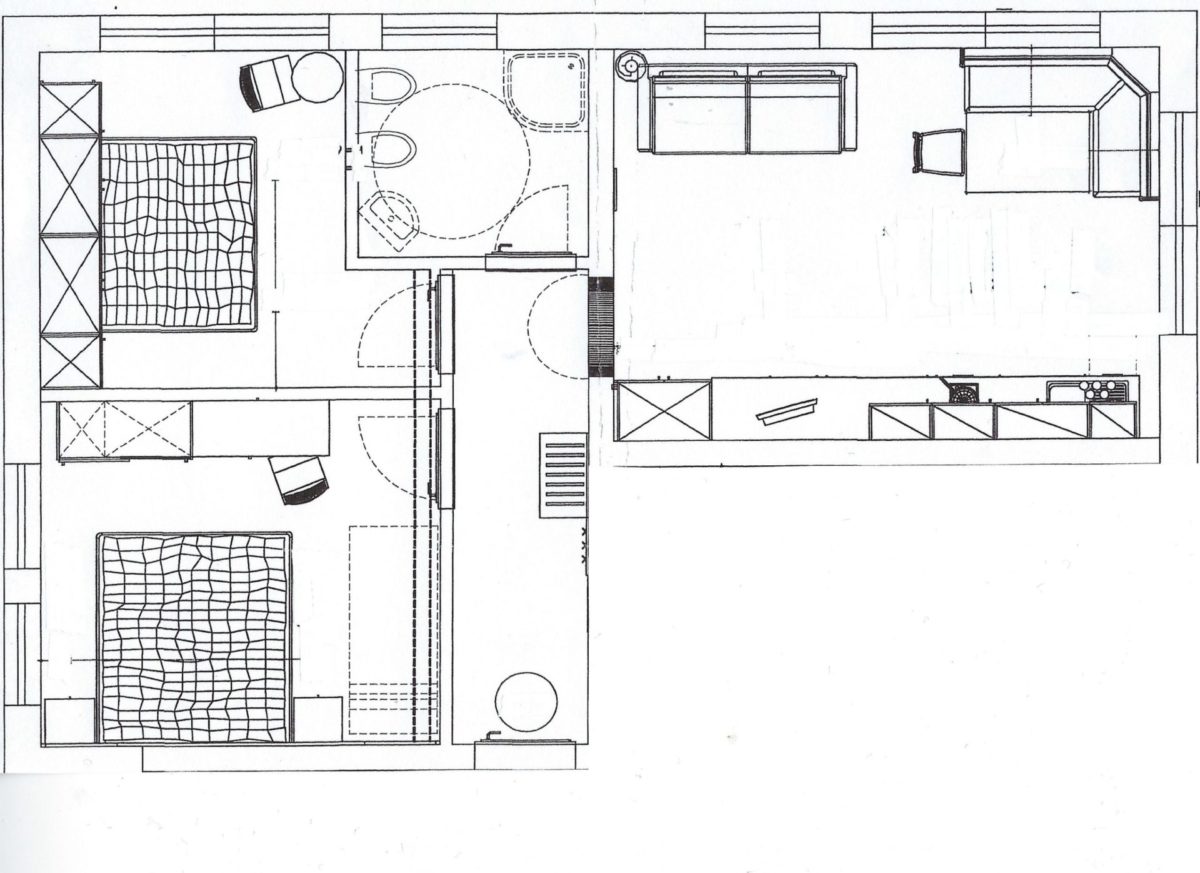 mit Doppelbett, ausziehbare Sitz-Couch und Bettwäsche