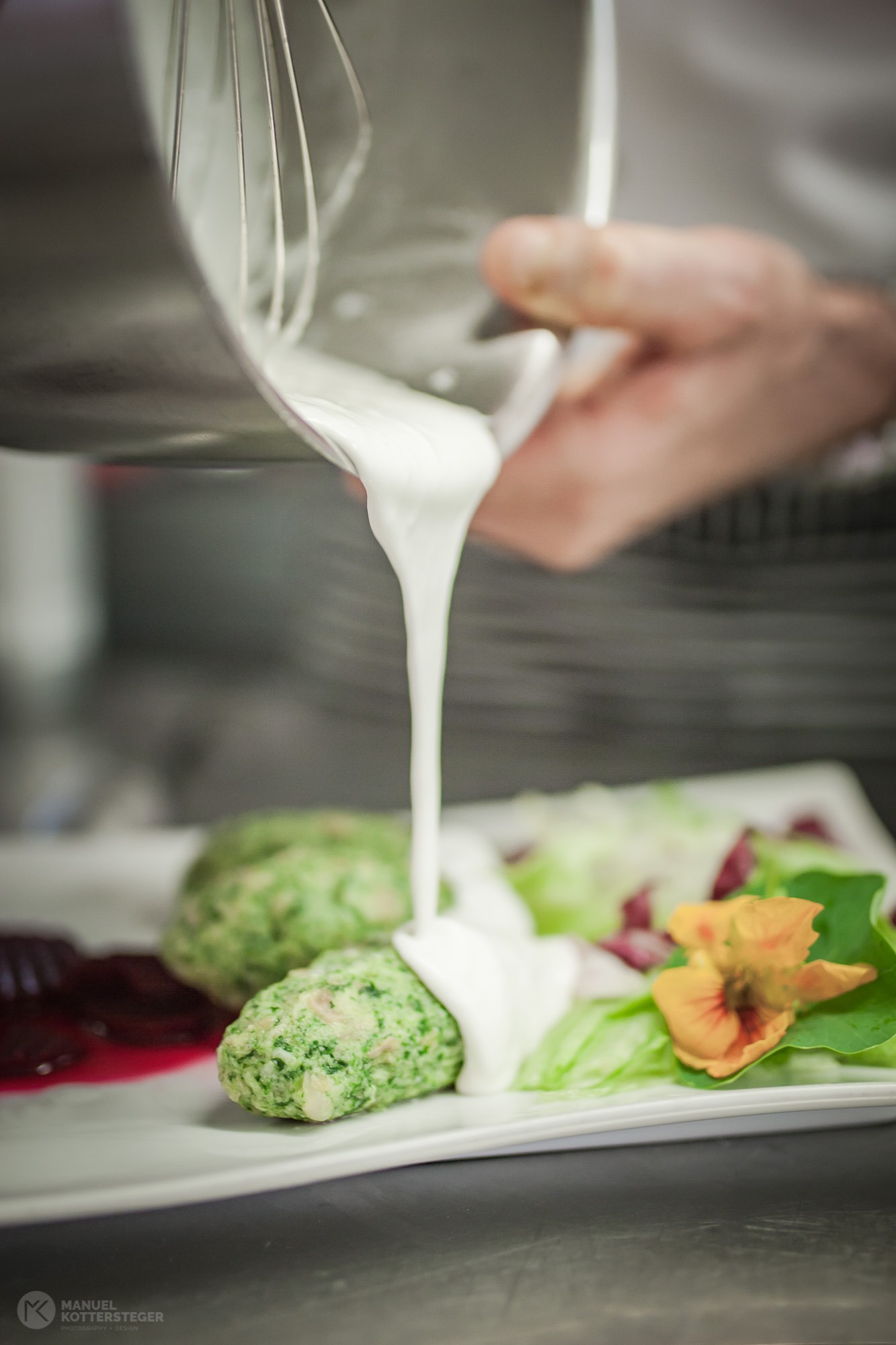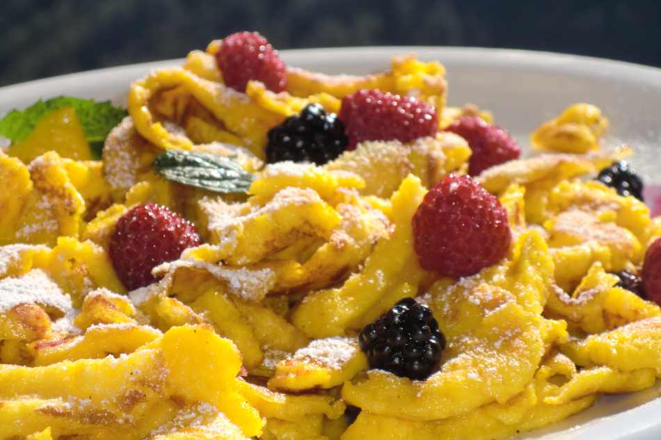 Selbstgemachte Pizza, Knödel Variationen, Wildgerichte, Kaiserschmarrn, Apfelstrudel, heimische Kräuter und Waldfrüchte